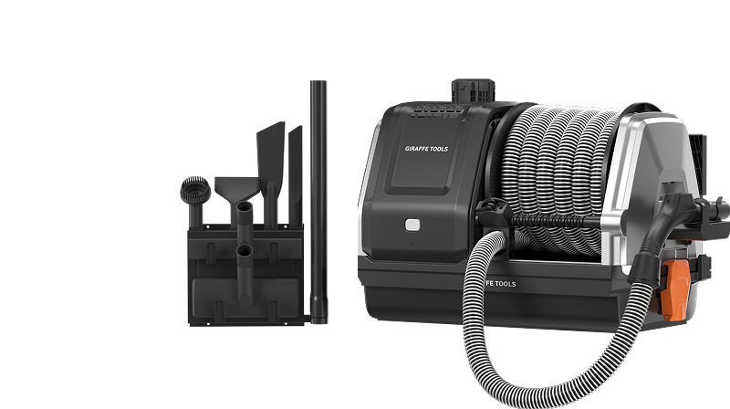 Best retractable vacuum hose extension by Giraffe Tools — 30ft reach, smooth auto-rewind, and durable crush-proof design for garage or workshop.