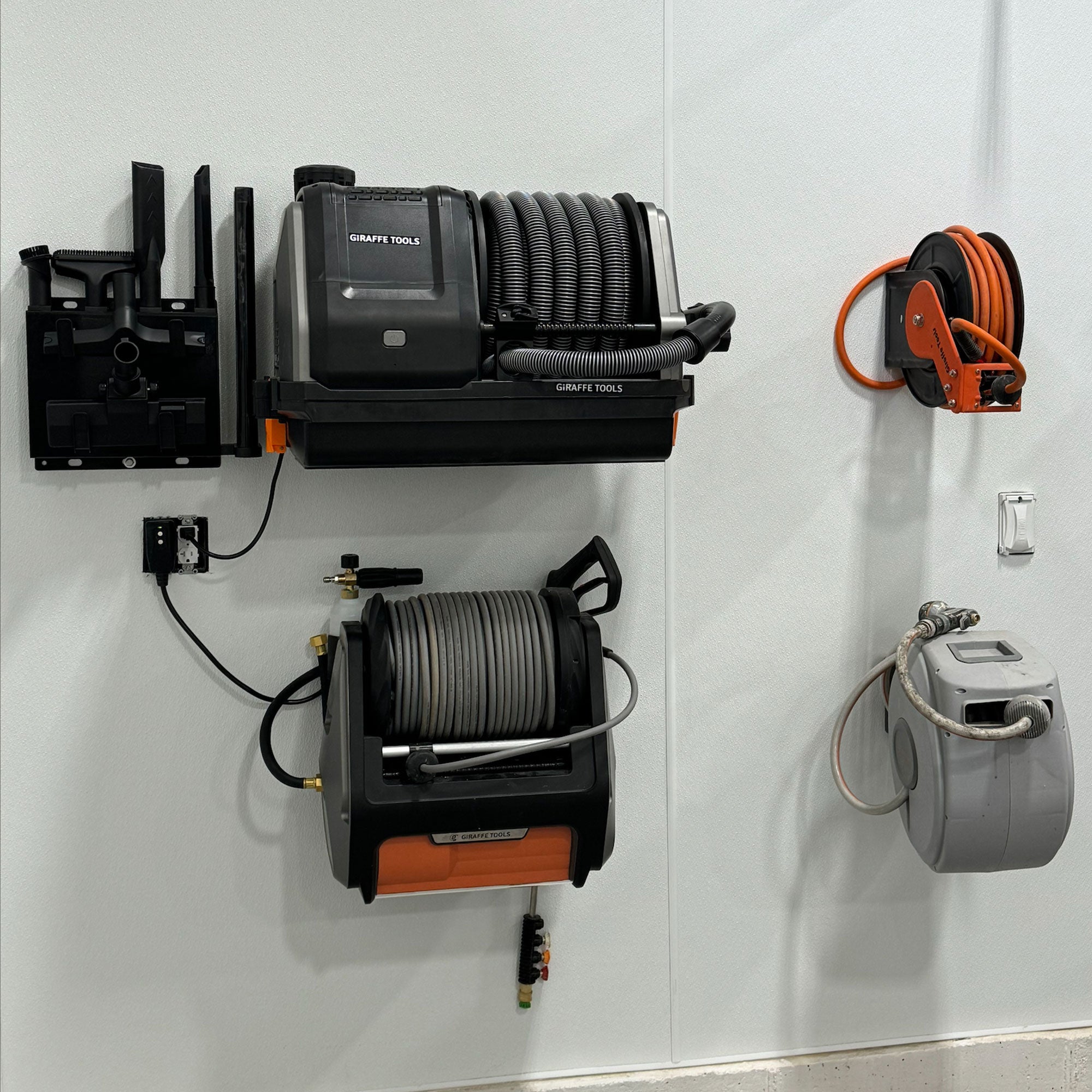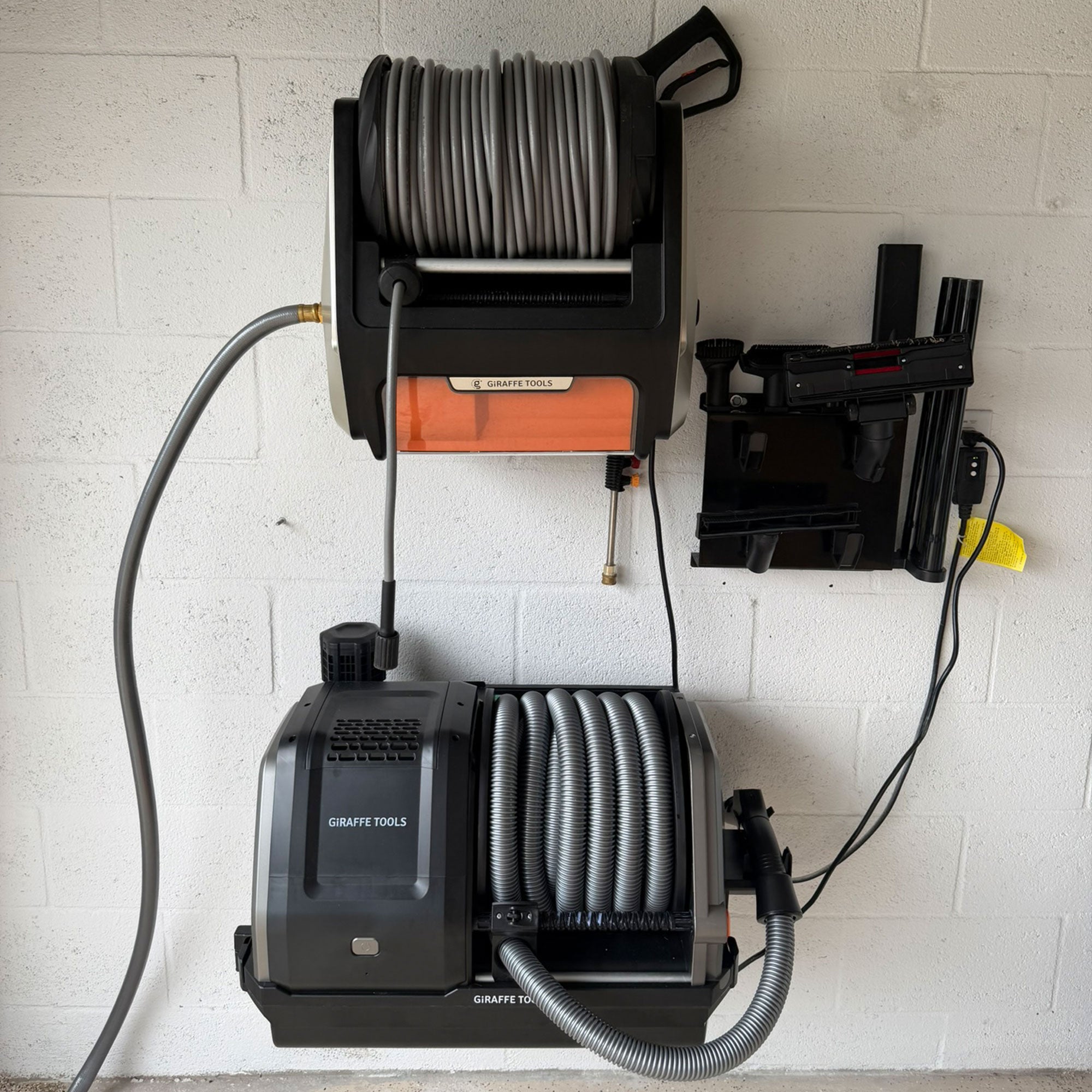 Elevate your garage and eliminate dirt, mess, and tangled cords with one powerful cleaning set.