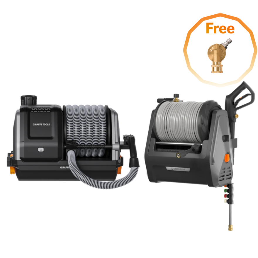 - What's Included: Retractable Pressure Washer Pro + Retractable Vacuum Cleaner + Pressure Washer Pivoting Coupler