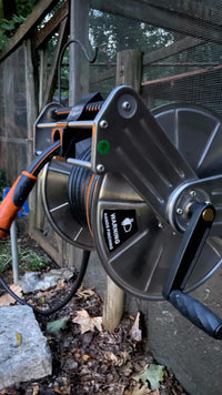 Giraffe Tools wall-mounted garden hose reel allows you to tuck a hose away easily when it's not in use. Make garden hose storage simple and clean!