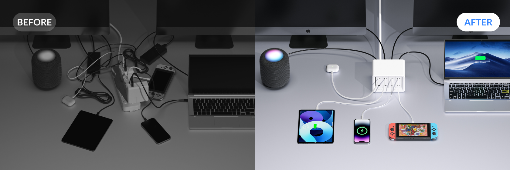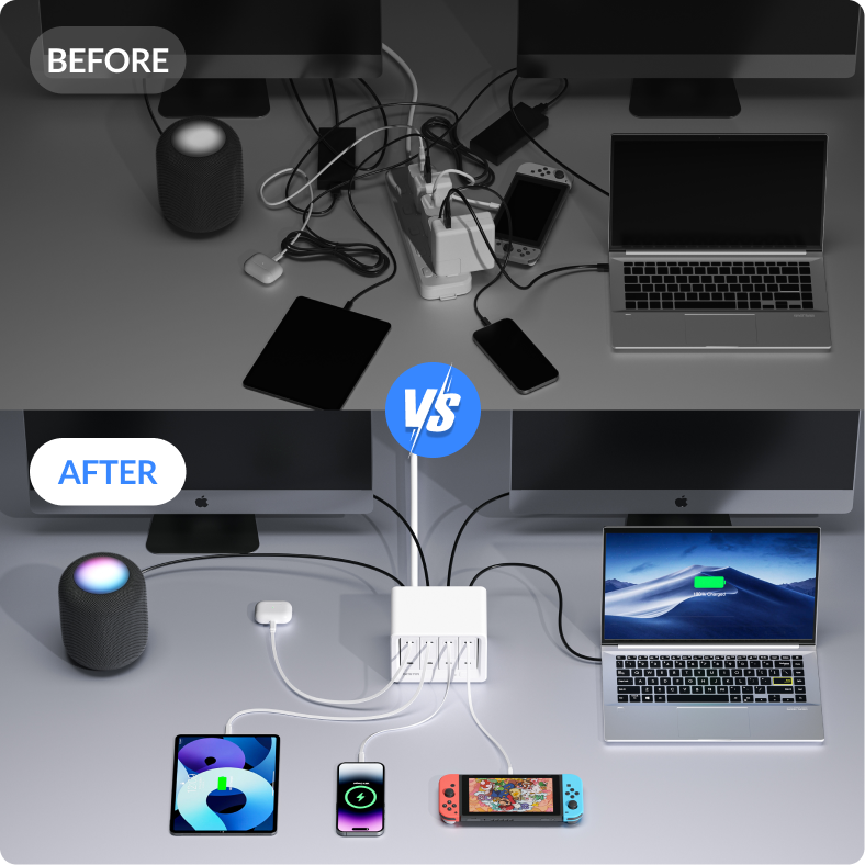 - All-in-One Charging Solution: Combine 8 AC outlets and 4 retractable 40W chargers to charge up to 12 devices simultaneously—maximizing power and saving valuable desk space.