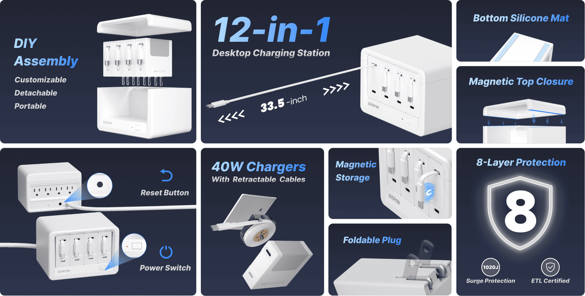 Gitryin Desktop Charging Station 12-in-1 (40W Combo)