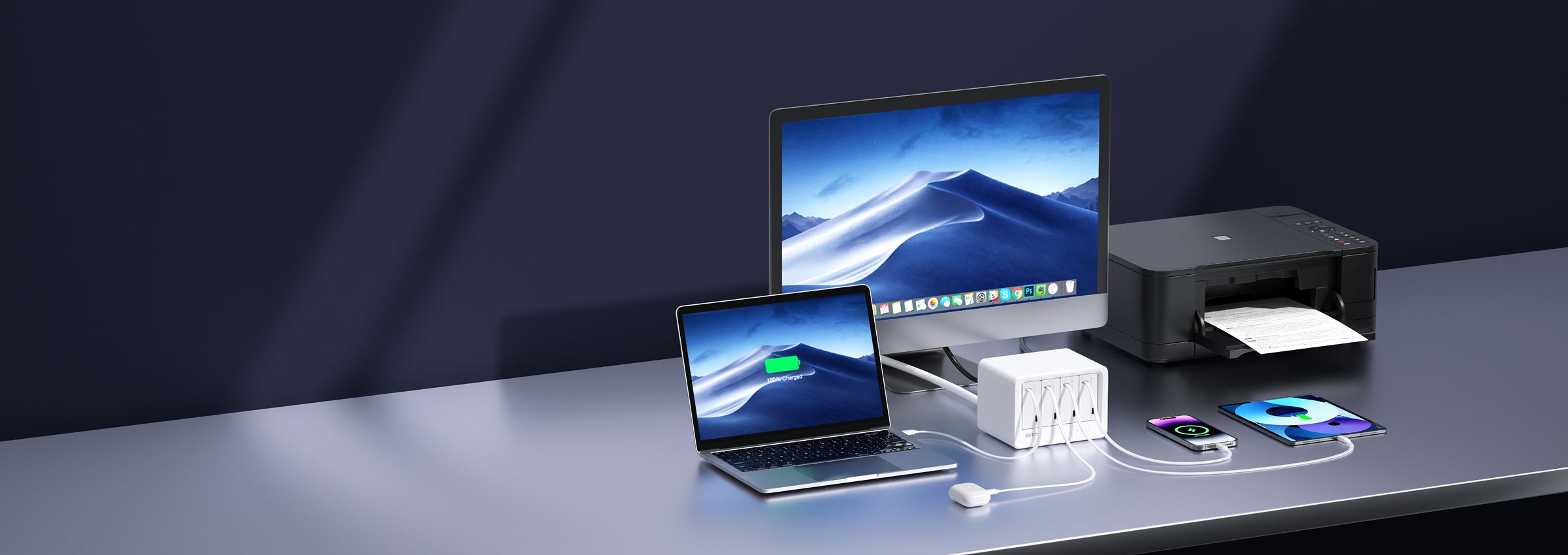 Leveraging advanced GaN technology, this charger includes high-efficiency chips that protect against over-charging, over-heating, over-voltage, over-current, and short circuits.