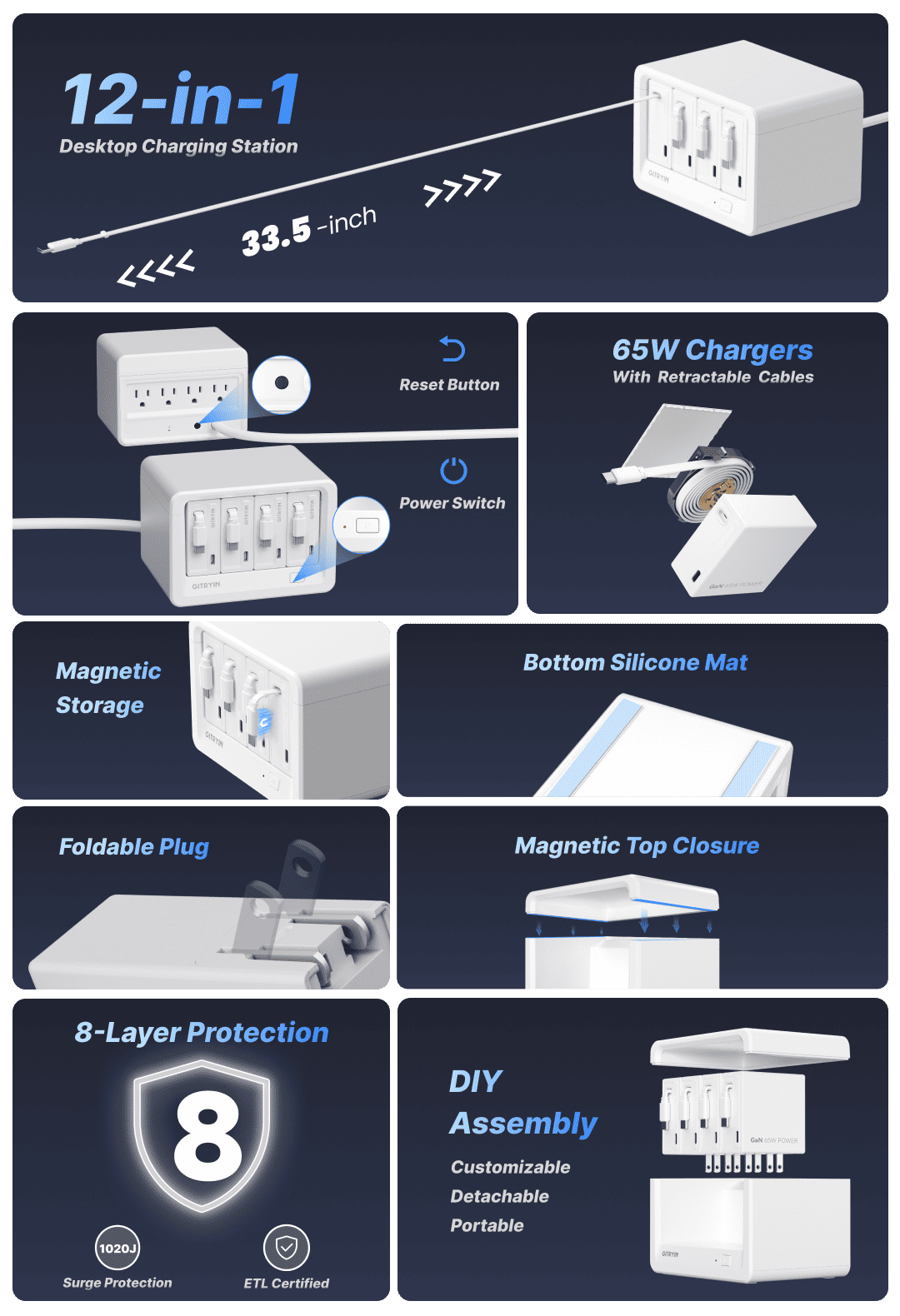 Gitryin Desktop Charging Station 12-in-1 (65W Combo)