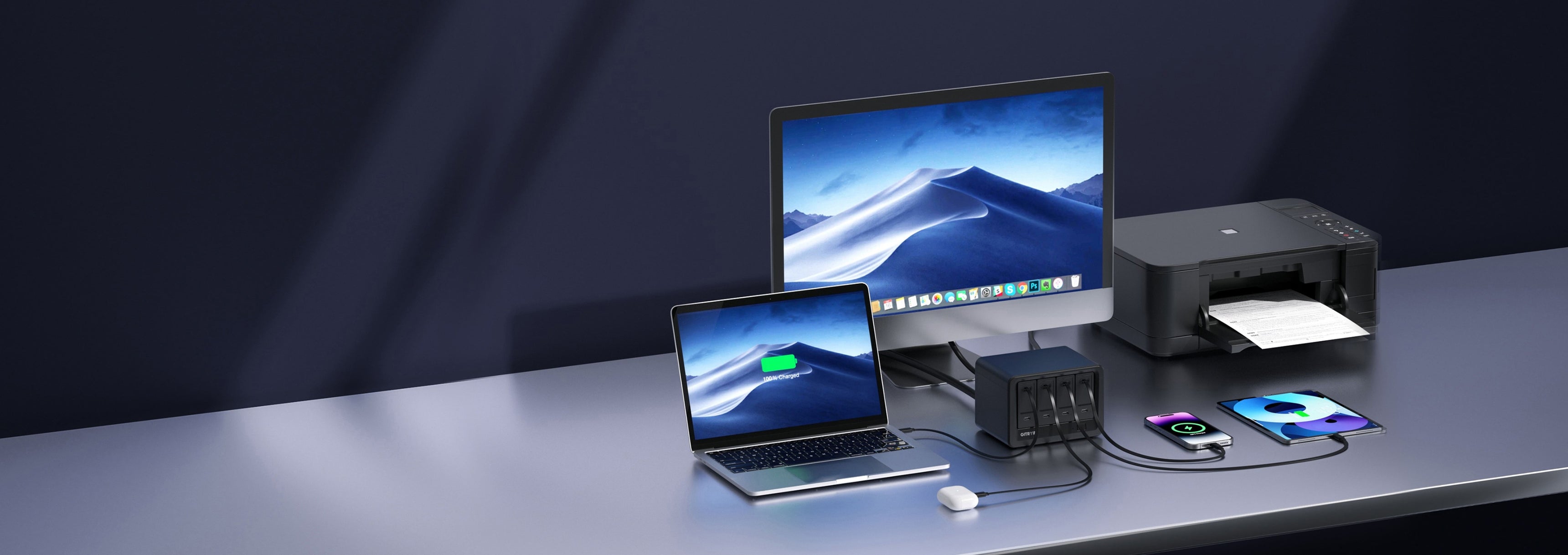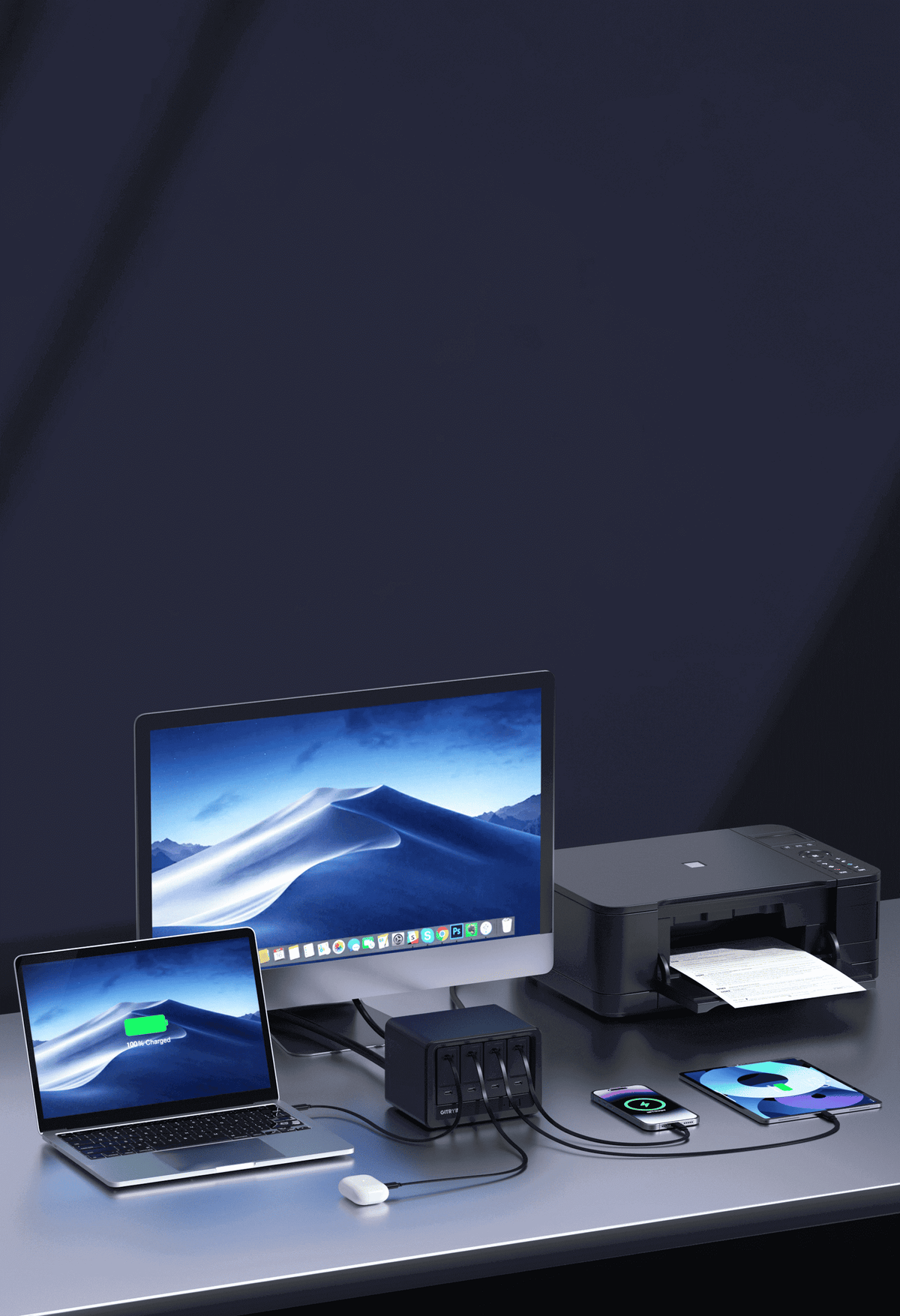 Leveraging advanced GaN technology, this charger includes high-efficiency chips that protect against over-charging, over-heating, over-voltage, over-current, and short circuits.
