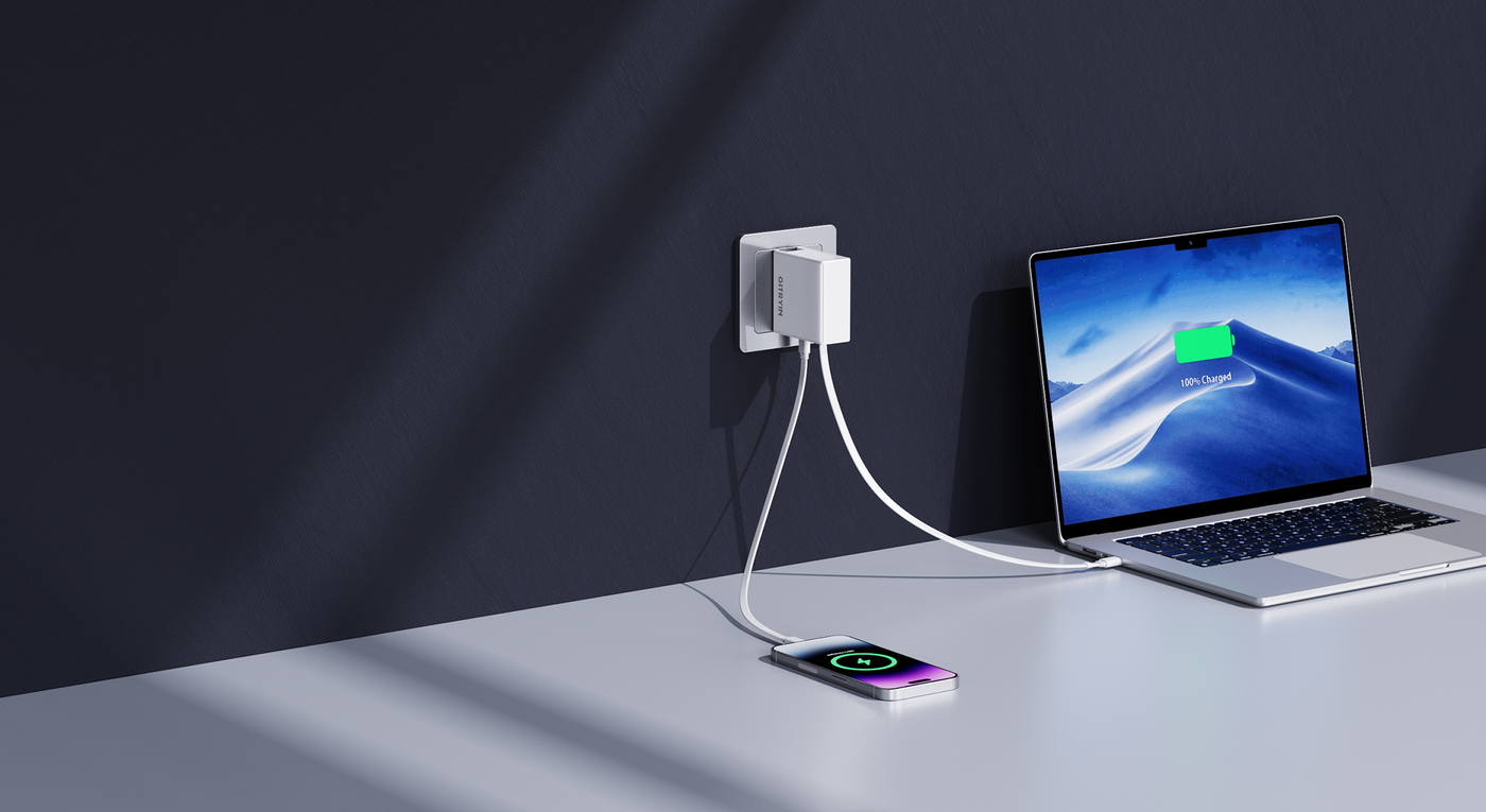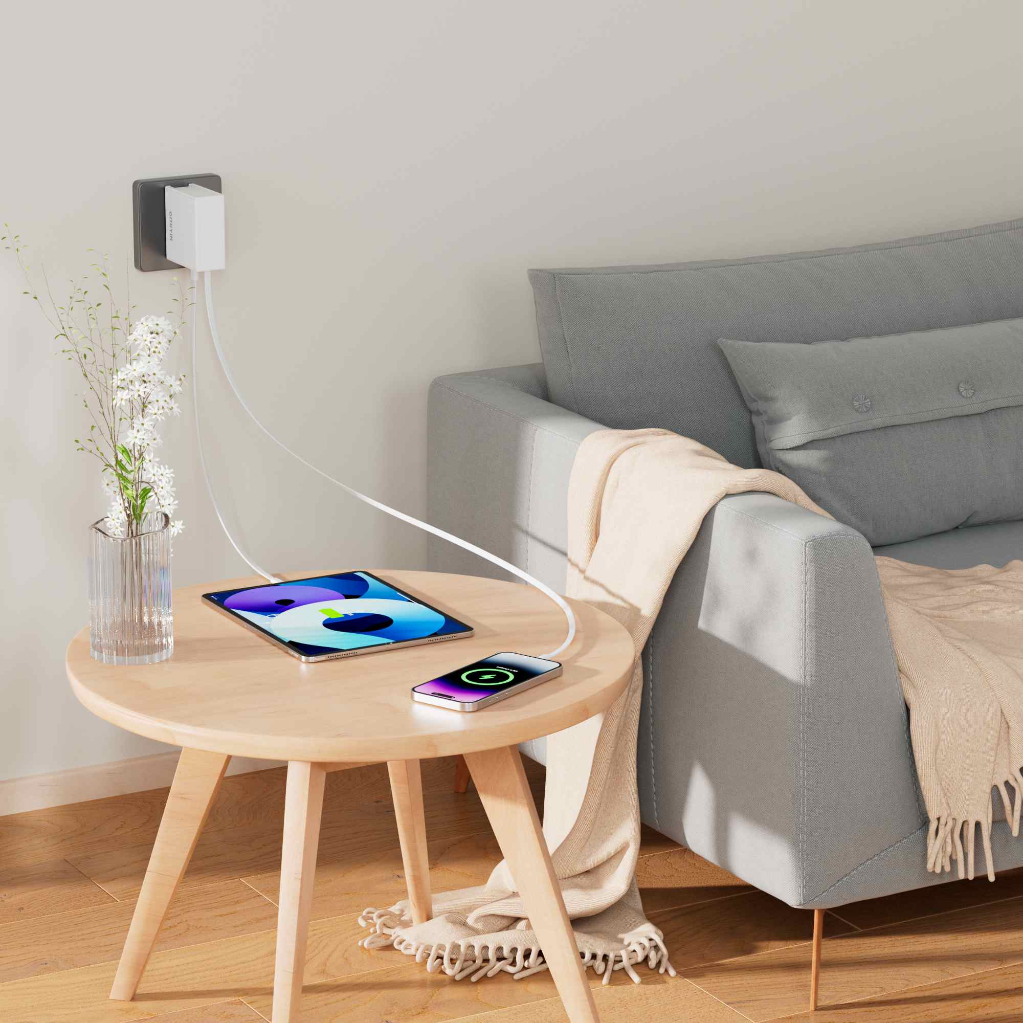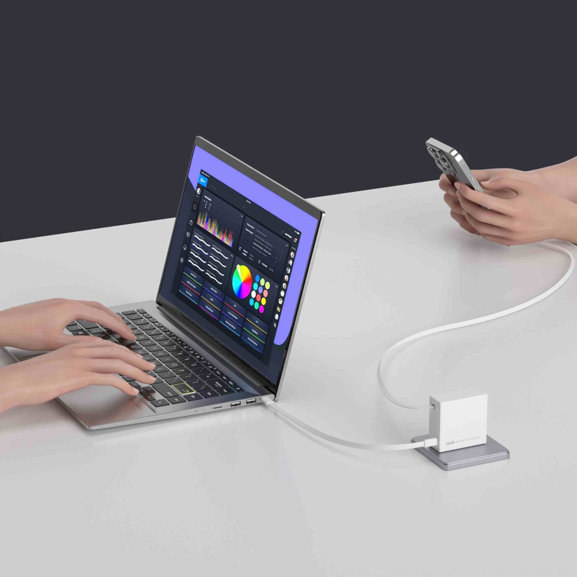 [65W Fast Charging, Supports Two Devices] This charger features a retractable cable and USB-C ports, providing up to 65W of fast charging. It efficiently charges your laptop, phone, or tablet simultaneously, helping you say goodbye to battery anxiety. Whether for work or entertainment, keep your devices powered and ready to go.