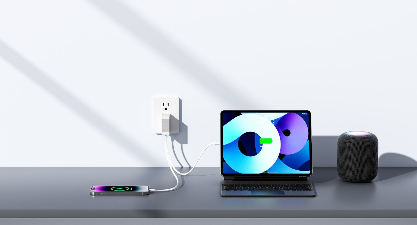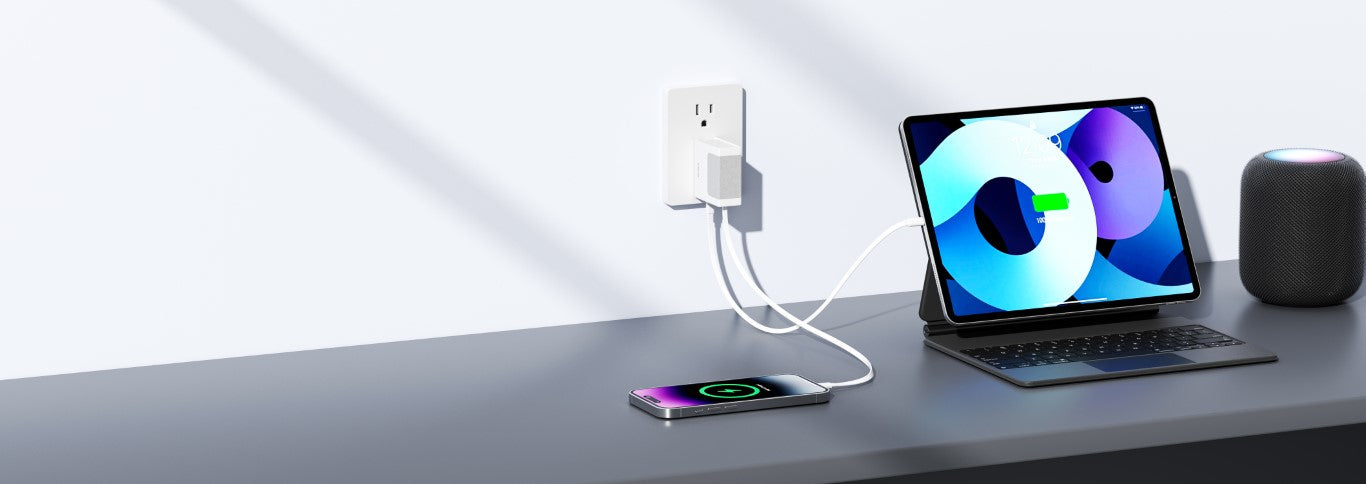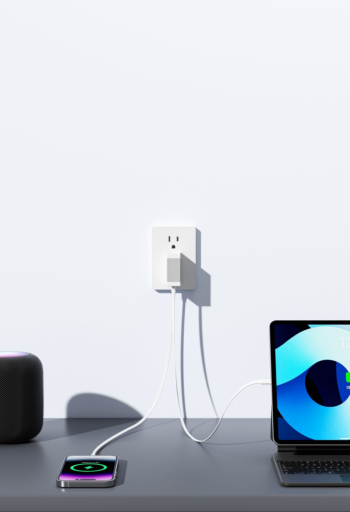 [Slim and Compact] With a slim 1.1-inch (28mm) width, this charger fits seamlessly into standard power strips and outlets. Its compact design prevents blocking adjacent ports, making it ideal for crowded or limited space environments.