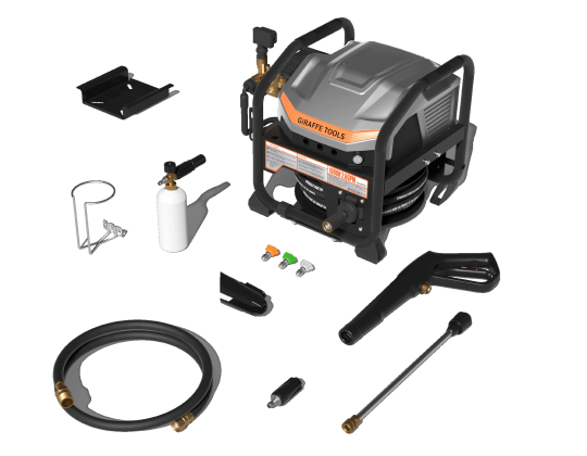 - [All-Inclusive Accessories] Includes turbo, 15°, 25°, 40° nozzles, a 1L foam cannon, a high-pressure gun with safety lock for adjustable water flow, as well as a 1.7-meter inlet hose. No need to purchase additional accessories—ready to use right out of the box, allowing you to start cleaning immediately.