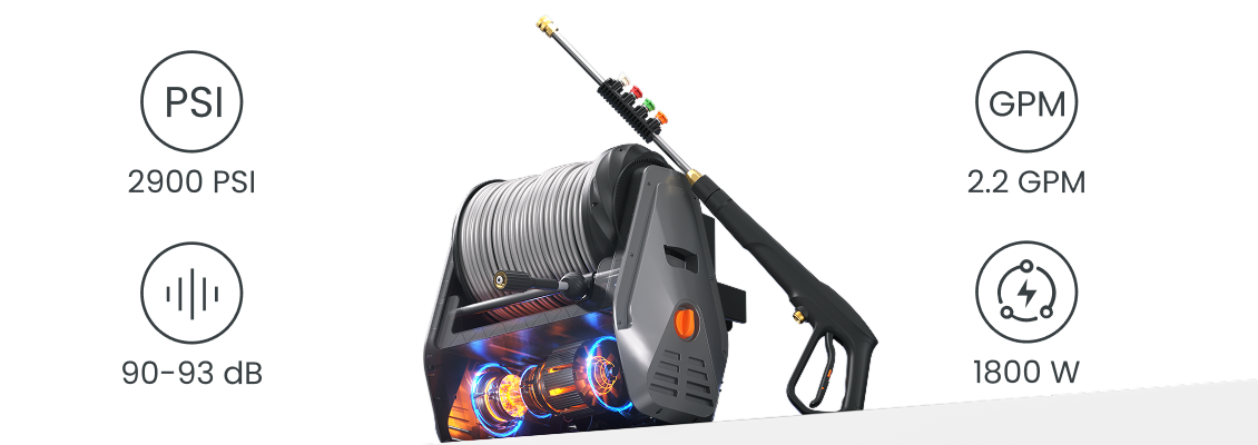 • 2900 PSI & 2.2 GPM for quiet, efficient cleaning