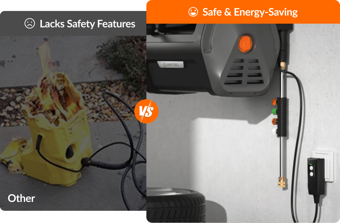 • Powerful Cleaning, Lower Noise: Delivering 2900 PSI, it blasts through dirt, oil, and grime on driveways, vehicles, and siding. Despite its strength, it runs at only 90–93 dB—about twice as quiet as gas models.