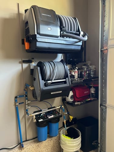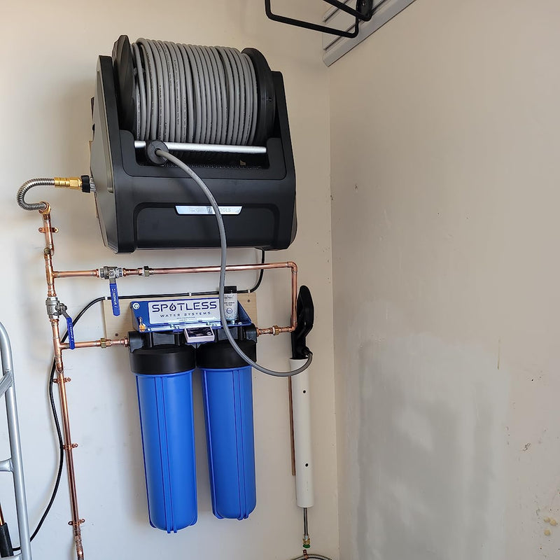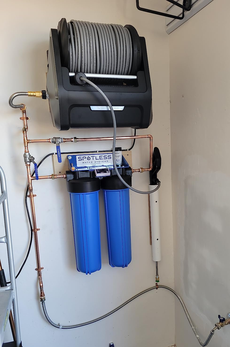 The DIW-20 is a professional-grade deionized water filtration system from CR Spotless. It removes dissolved minerals, calcium, and other impurities from tap water, leaving no water spots after drying.