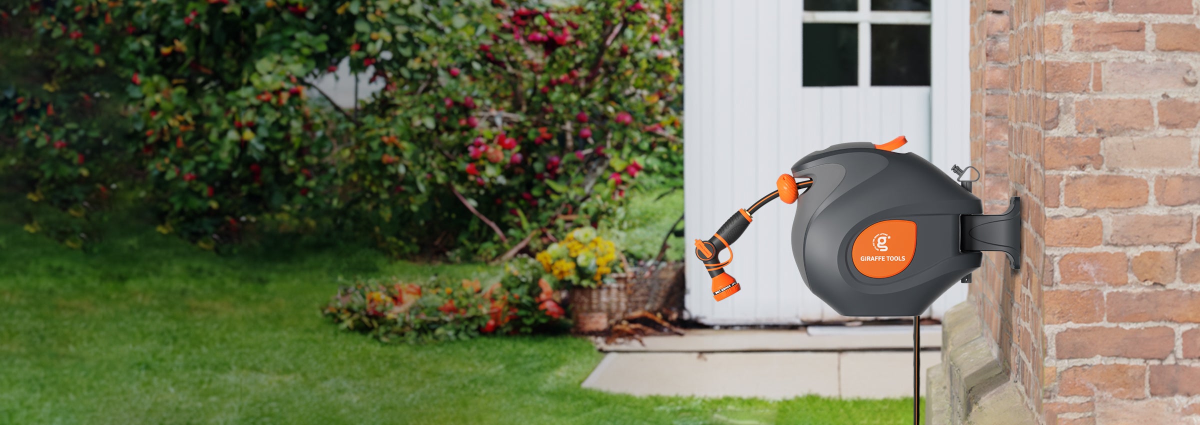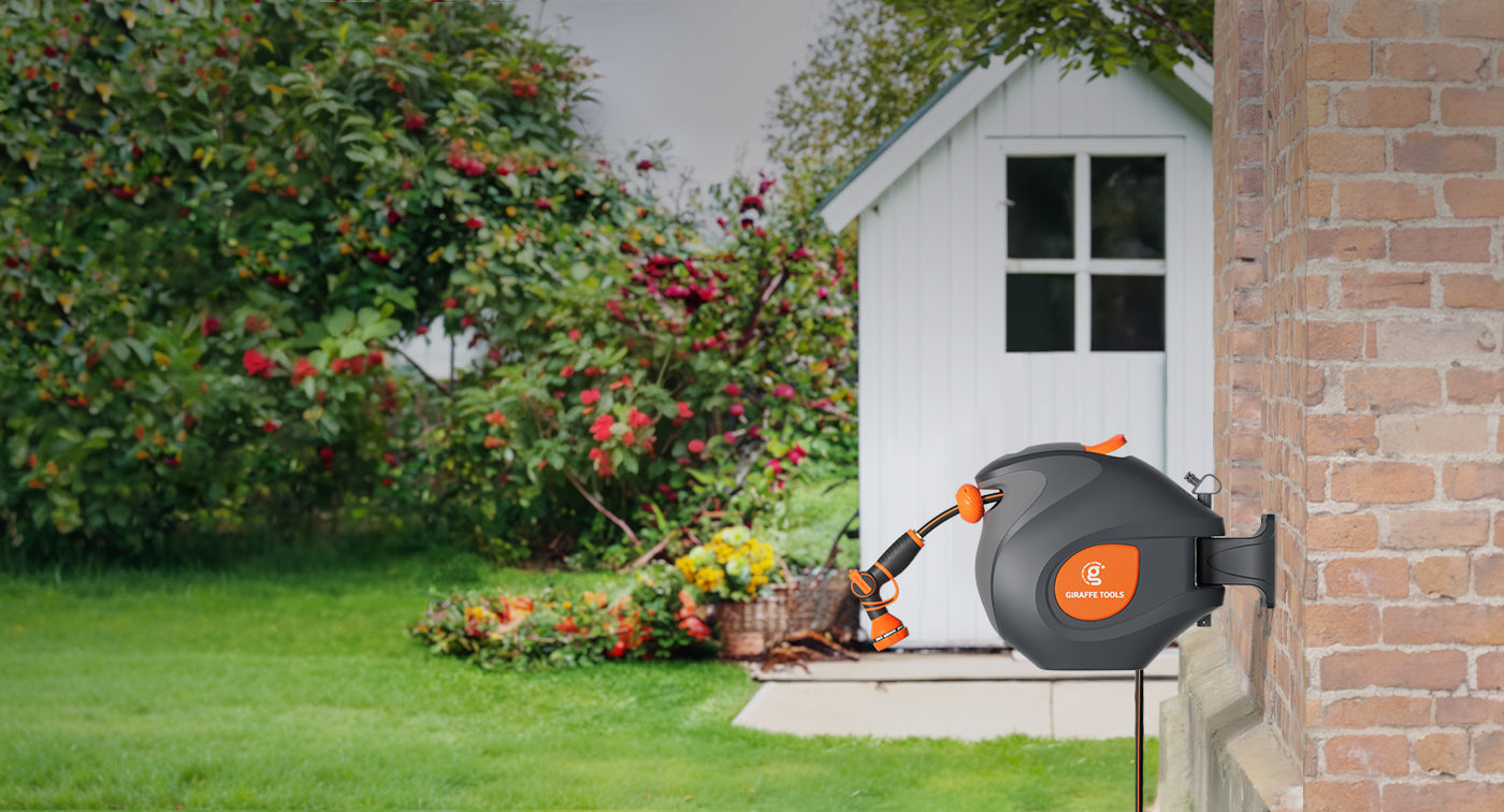 A wall-mounted retractable hose reel provides you with a one-stop watering service. Always prepared to use it anywhere, anytime.