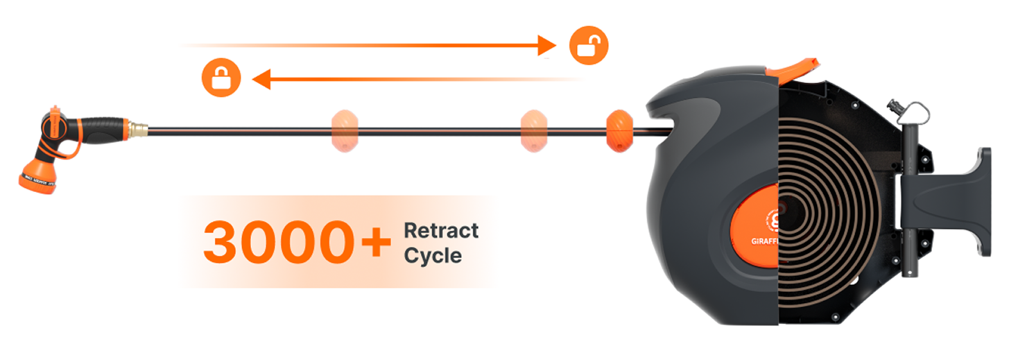 Pull the hose to start watering instantly, then let it retract smoothly when you’re done. Simple. Fast. Efficient.