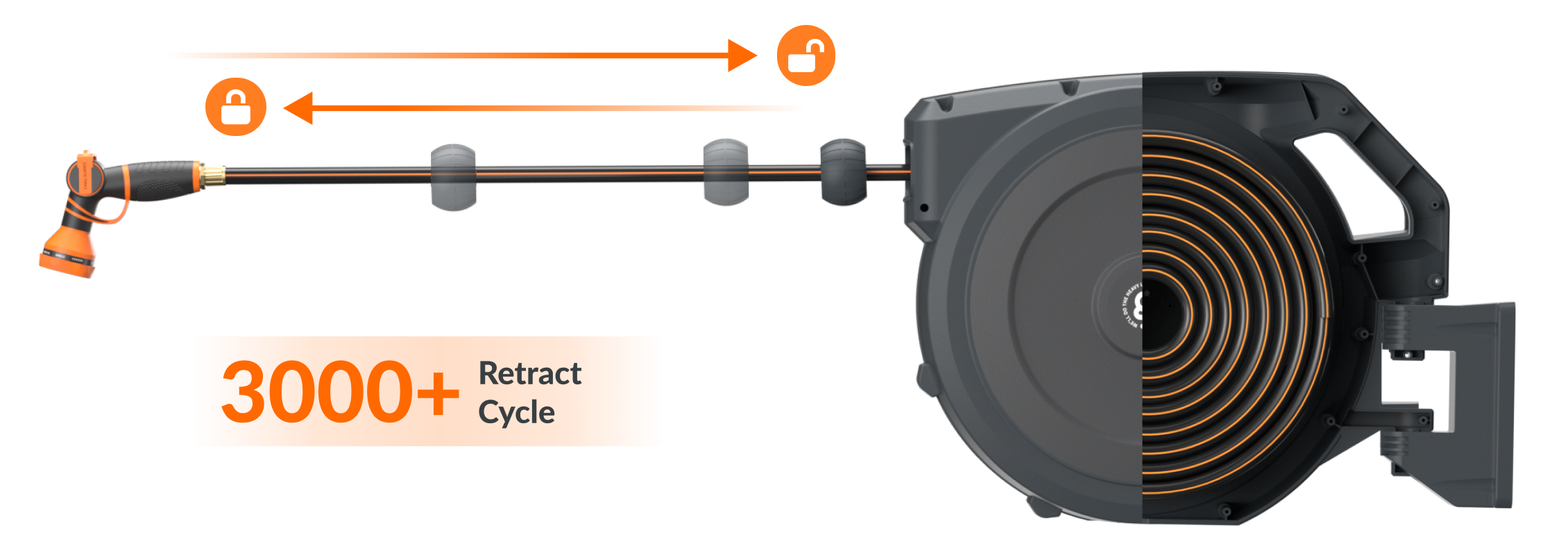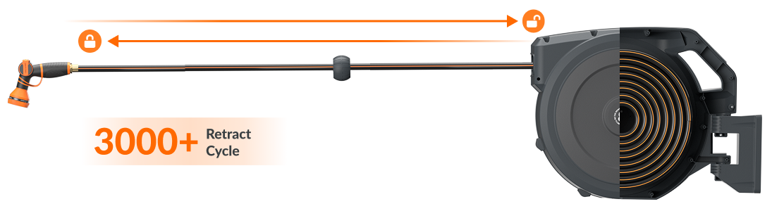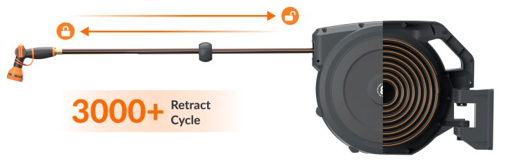 - #1-Reated Retraction, Smooth and Safe: Forget frustrating jams or snapbacks. With our #1-rated retraction system, the hose retracts smoothly and safely with a gentle tug and the adaptive layering system makes the hose winds back neatly - making cleanup quick, easy, and safe for all ages. Built to last through thousands of cycles, it’s engineered for daily use.