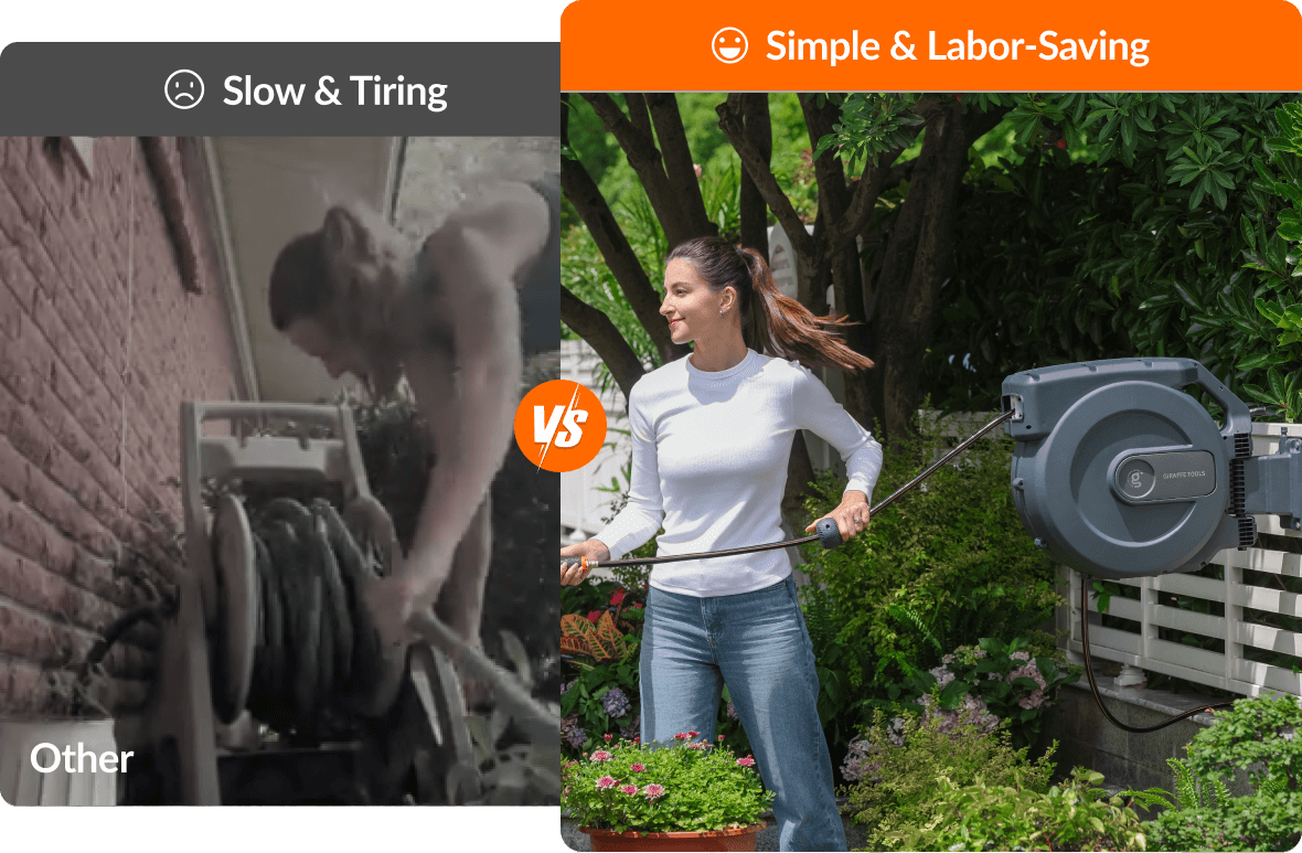 No more hauling heavy hoses—just grab, use, and rewind.