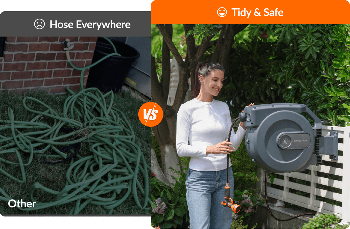 Pull the hose to start watering instantly, then let it retract smoothly when you’re done. Simple. Fast. Efficient.
