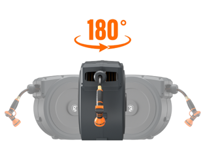 The 155 ft all-weather hose is flexible, abrasion-resistant, and pressure-tested (116 PSI working, 600 PSI burst) for leak-free, long-lasting performance—no kinks, no cracks, no matter the season. - Full Yard Flexibility, Cover Every Corner: The 180° swivel bracket lets you water every corner of your yard or driveway without moving the reel. It follows your lead when needed, and stays locked in place when not. Post-mountable design also supported—just ensure the post is larger than 4×4 inches for best stability.