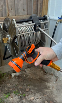 Giraffe Tools wall-mounted garden hose reel allows you to tuck a hose away easily when it's not in use. Make garden hose storage simple and clean!